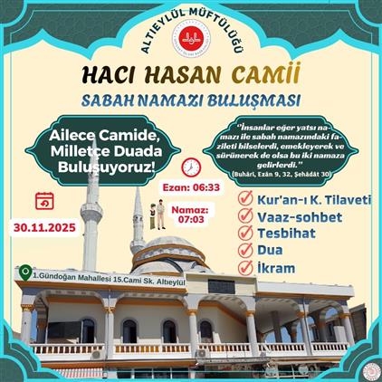 HACI HASAN CAMİİ SABAH NAMAZI BULUŞMASINA DAVET!