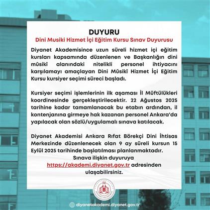 Dini Musiki Hizmet İçi Eğitim Kursu Sınav Duyurusu