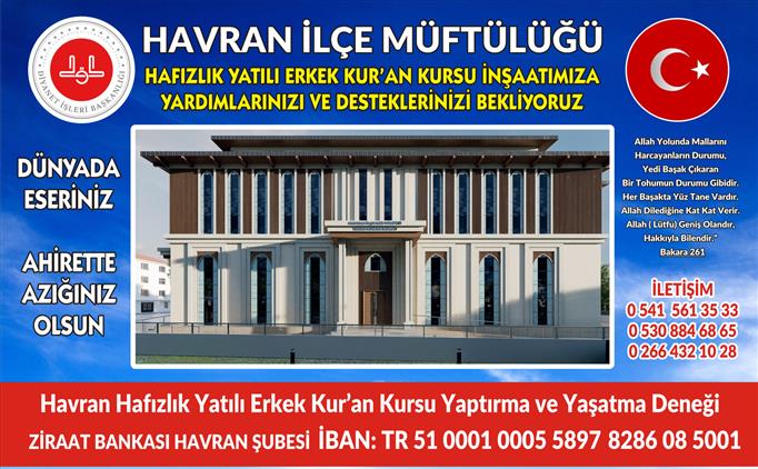 Havran İlçe Müftülüğü Hizmet Binası ve Hafızlık Kursu İnşaatına Desteklerinizi Bekliyoruz