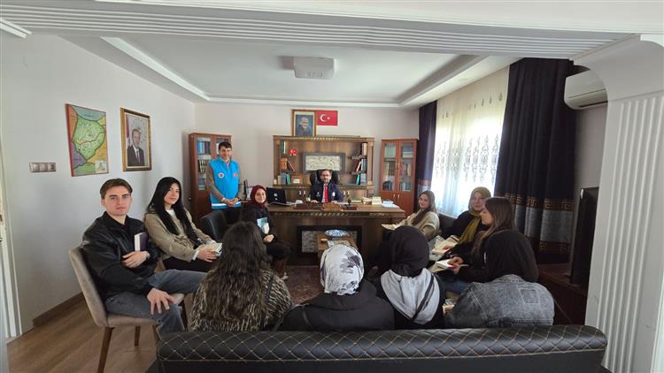 İlçe Müftüsü Sedat Karali, makamında ağırladığı gençlerle yakından ilgilenerek samimi bir sohbet gerçekleştirdi. Gençlerin güncel konulara ve dini hayata dair sorularını tek tek dinleyen Karali, tecrübelerini paylaşarak öğrencilerin merak ettiği hususlara rehberlik etti. Gençlerin görüş ve önerilerini dinleyen Karali, Diyanet Gençlik çalışmalarının her zaman gençlerin yanında olduğunu vurguladı.