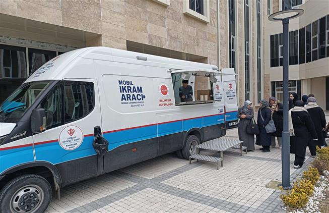Balıkesir İl Müftülüğü, Türkiye Diyanet Vakfı (TDV) Balıkesir Şubesi ve Altıeylül İlçe Müftülüğü organizesinde mobil ikram aracı ile Balıkesir Üniversitesi Çağış yerleşkesinde öğrencilere çorba ikramında bulunuldu.