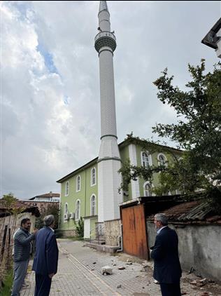 Depremde hasar gören Camileri ve minareleri ziyaret ederek incelemelerde bulundu. Sındırgı İlçe Müftüsü Sami Türkel'den ve Cami görevlilerinden hasarlar hakkında bilgi aldı.